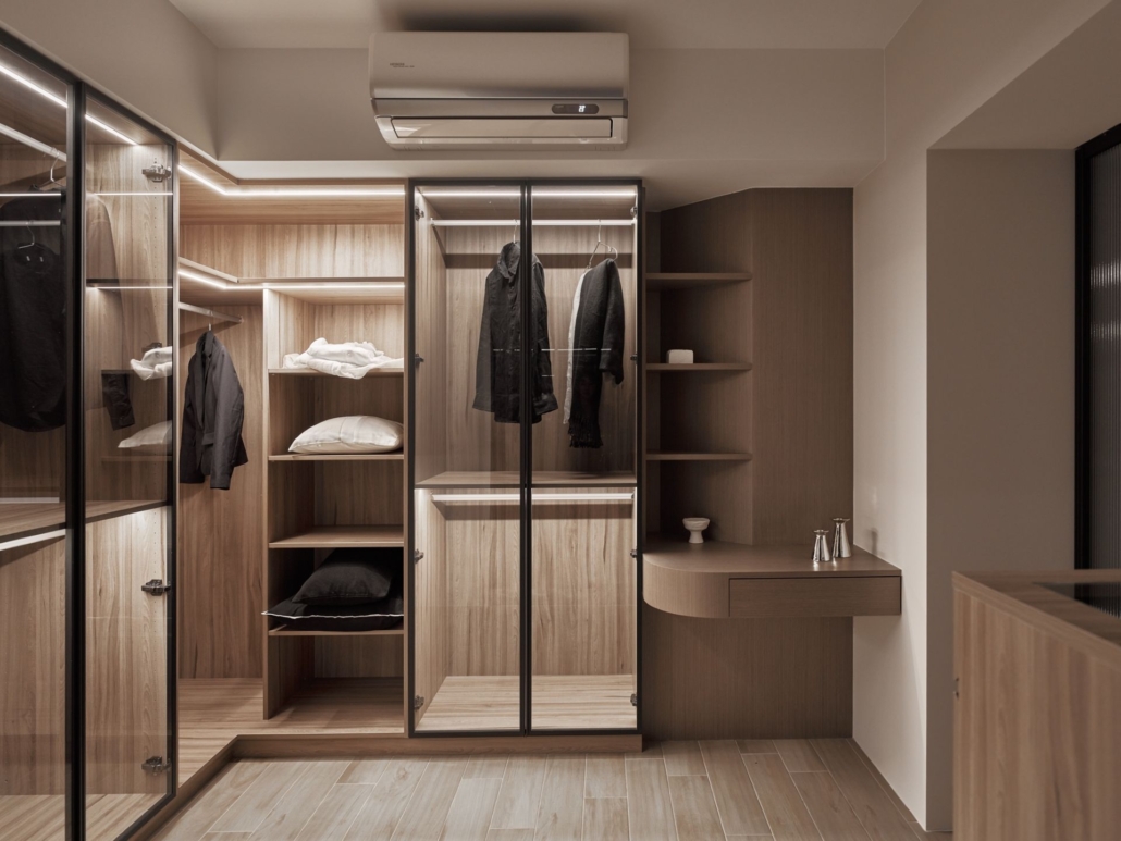 為了呼應業主一家對自然的熱愛,設計團隊在公共區域的櫃體設計上融入了柵欄式的元素,這些不規則排列的柵欄如同植株一般,營造出自然界中的和諧律動感,進一步增強空間的自然氛圍。配合玻璃材質的應用,使得視覺效果更加通透,讓室內外元素得以相呼應,延續自然的氣息。